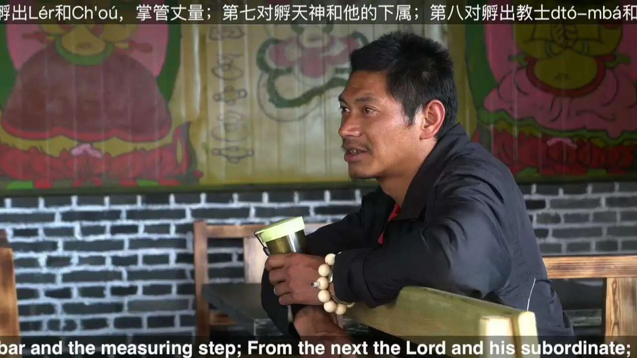 Inspired by the book of the same name by Michael Oppitz, the film "Dinge Mythen Piktogramme" (Things Myths Pictograms) confronts stories of creation and transformation of the ethnic group of "Naxi" in Yunnan in southwest China with pictures from the life of the Naxi shaman He Xiudong in the modern tourist city Lijiang. The second part of the film accompanies him at a nightly ritual to expel ghosts. Field recordings by Yasuhiro Morinaga, interviews by Christine Falk, translations by Zhou Qiao, assistance by Dava Frog Wing. Produced at Lijiang Studio, China.